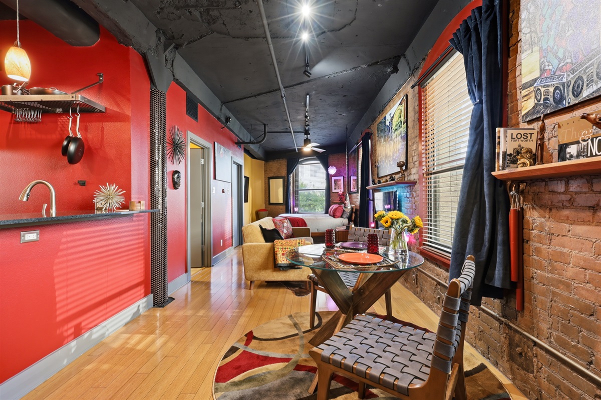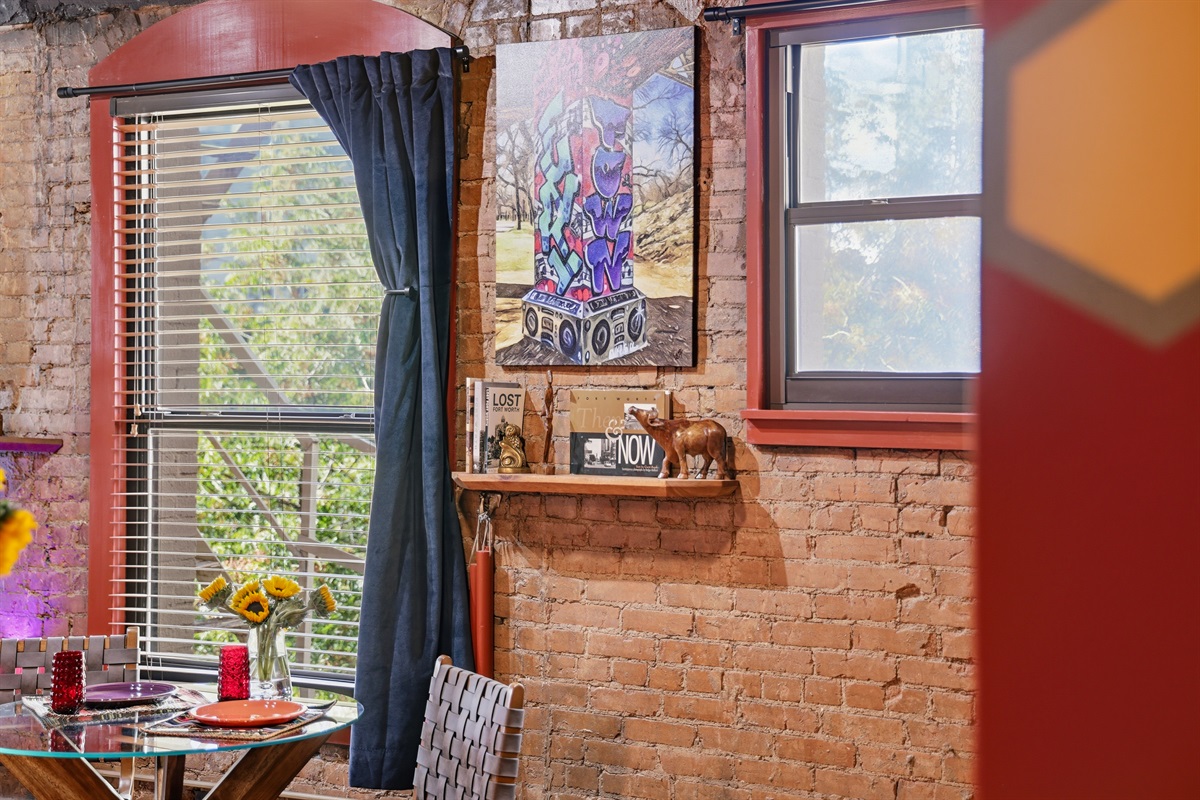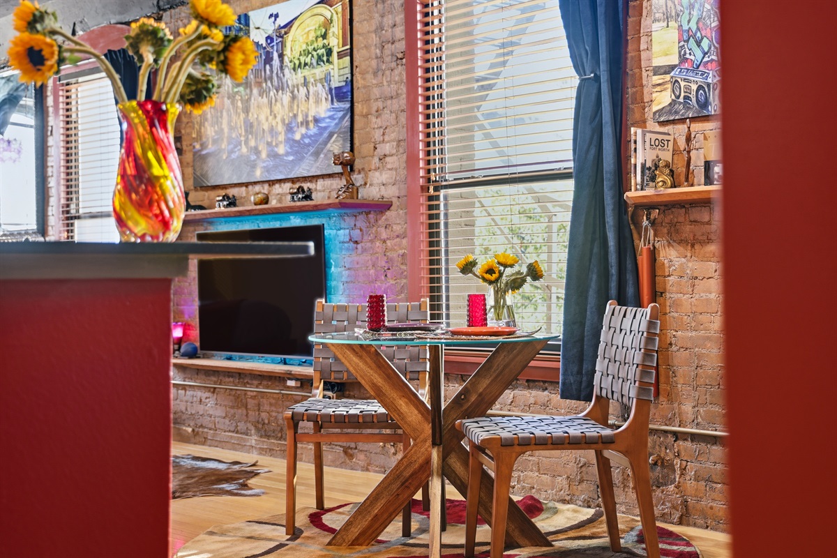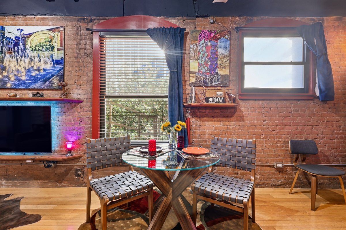 1 Bedroom • 1 Bathroom 1 Bath • Sleeps 2-3Built in 1906 as the Western National Bank, this remarkable structure was Fort Worth’s first concrete skyscraper and proudly anchored the north end of the city’s infamous Hell’s Kitchen. For decades, it served as office space until its transformation in the mid-1990s into privately owned condominiums. With 20-inch brick walls and 15-inch concrete floors and ceilings, the building radiates history and character. Warm bamboo flooring, exposed red brick, and vibrant colors create a welcoming atmosphere that reflects its storied past. These walls truly have stories to tell. Come, stay with us and listen to what these walls have to say.