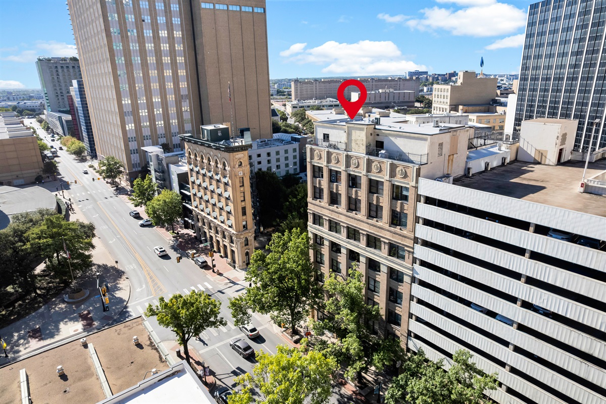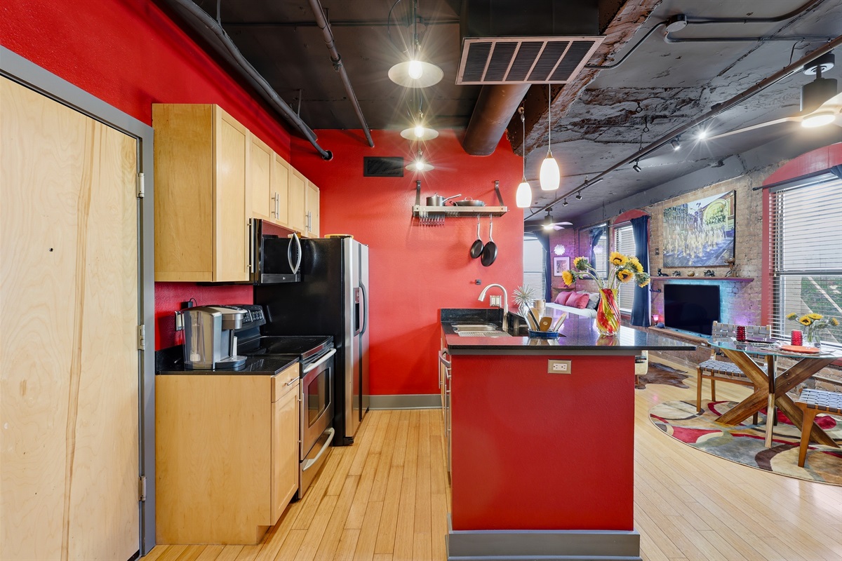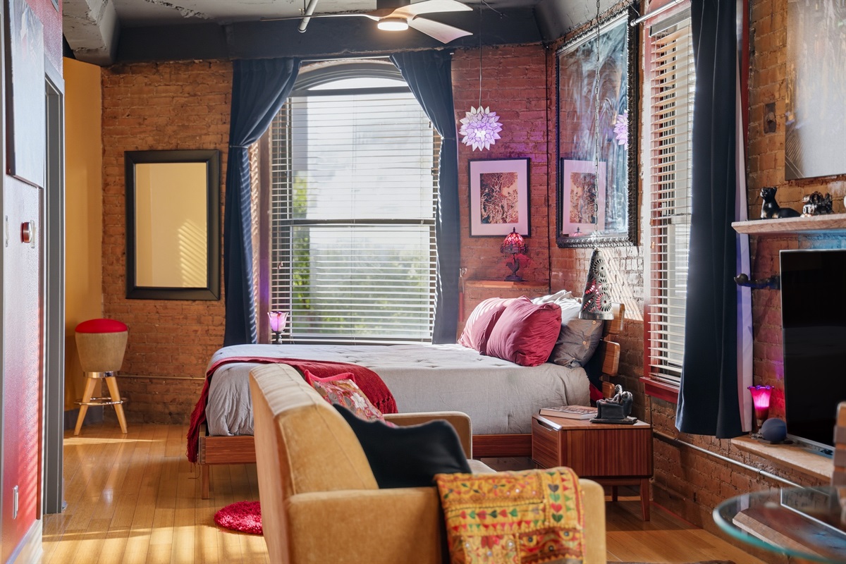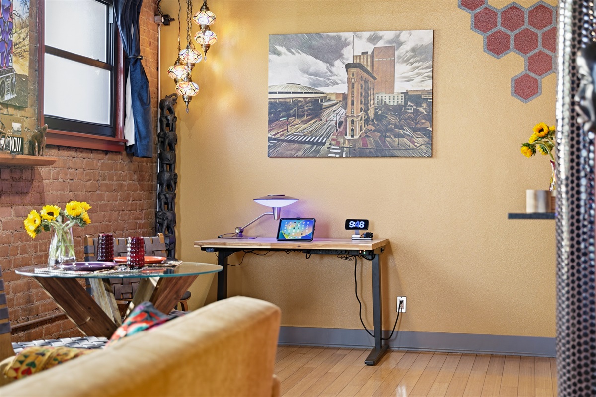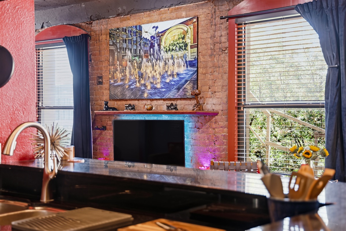 1 Bedroom • 1 Bathroom 1 Bath • Sleeps 2-3Built in 1906 as the Western National Bank, this remarkable structure was Fort Worth’s first concrete skyscraper and proudly anchored the north end of the city’s infamous Hell’s Kitchen. For decades, it served as office space until its transformation in the mid-1990s into privately owned condominiums. With 20-inch brick walls and 15-inch concrete floors and ceilings, the building radiates history and character. Warm bamboo flooring, exposed red brick, and vibrant colors create a welcoming atmosphere that reflects its storied past. These walls truly have stories to tell. Come, stay with us and listen to what these walls have to say.