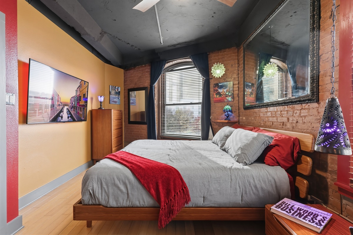 1 Bedroom • 1 Bathroom 1 Bath • Sleeps 2-3Built in 1906 as the Western National Bank, this remarkable structure was Fort Worth’s first concrete skyscraper and proudly anchored the north end of the city’s infamous Hell’s Kitchen. For decades, it served as office space until its transformation in the mid-1990s into privately owned condominiums. With 20-inch brick walls and 15-inch concrete floors and ceilings, the building radiates history and character. Warm bamboo flooring, exposed red brick, and vibrant colors create a welcoming atmosphere that reflects its storied past. These walls have stories to tell. Come, stay with us and listen to what these walls have to say.